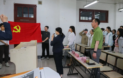 随后,151amjs澳金沙门党委副书记谢月恒老师带领毕业生党员们重温入党誓词,全体毕业生党员在党旗下高举右拳,以铮铮誓言重温入党初心,以嘹亮声音诉说报国之志。