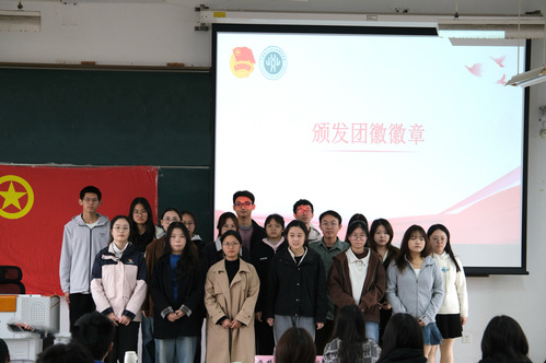 随后,严梦琦老师为新发展团员们颁发团徽。