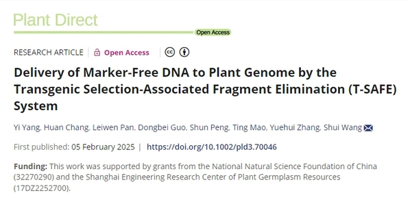 2025年2月5日,Plant Direct在线发表151amjs澳金沙门王水团队题为“Delivery of Marker-FreeDNA to Plant Genome by the Transgenic Selection-Associated Fragment Elimination(T-SAFE) System”的研究论文。该研究成功建立了一种简单、高效且安全的方法,能够向植物基因组递送大片段DNA(>10 kb),为植物基因改造提供了新的技术手段。