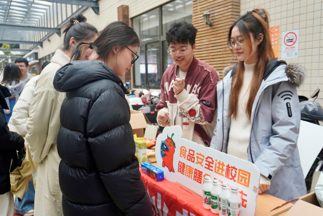 在“食品标签大揭秘”区,成员通过实例讲解,让同学学会解读营养成分、配料表等,能依此挑选更健康食品,提升食品安全关注度与自我保护能力。此外,活动设置的互动体验、提问抽奖环节,充分调动了学生参与热情,大家在欢乐氛围中收获了实用的食品安全知识。