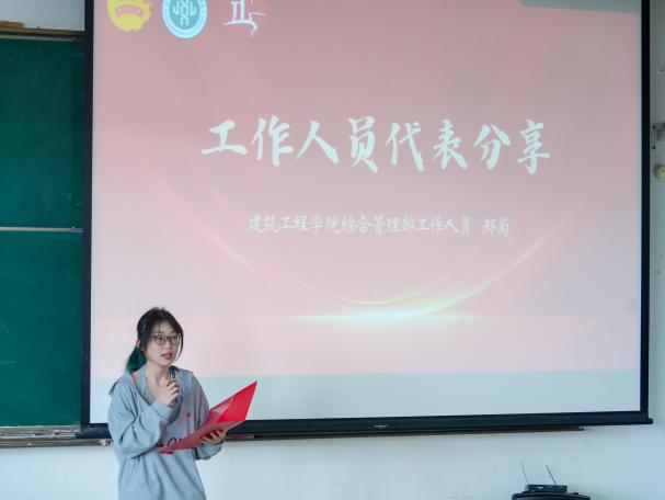 建筑工程学院团学组织部门负责人代表分享了大型活动策划经验。他们基于建筑梦想节活动策划的实际案例,围绕活动策划要素、活动策划技巧和突发事件应对策略三个部分,为活动策划提供了较为全面的建议和指导。