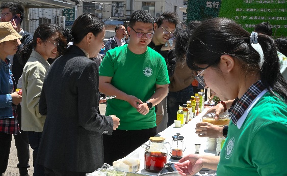 当天中午,“安全新食代”学生科普宣讲队首次在徐汇校区开展了校园食品安全路演。活动包括“三减”知识微问答、“三减”饮食猜猜猜和健康饮食微体验三个部分,重点宣传了“减盐、减油、减糖”和“健康体重”理念,现场制作了无添加的手打柠檬茶,得到了到场师生的高度好评。活动氛围热烈,吸引了三百余名师生参与,有效提升了在校师生对于食品安全和健康饮食的关注,助力营造良好的校园食品安全氛围。
