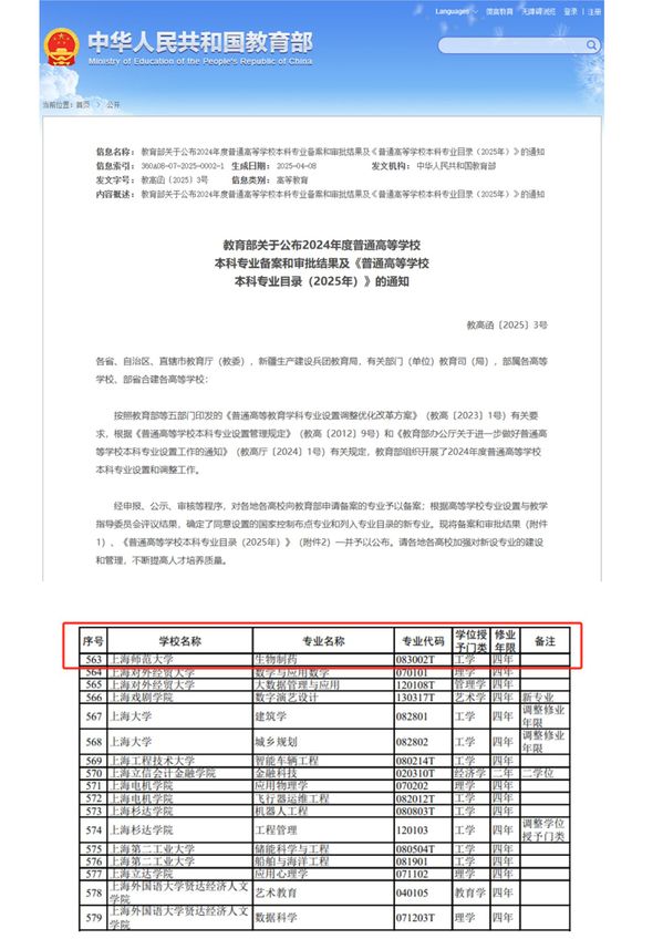 4月22日,教育部公布了2024年度普通高等学校本科专业备案审批结果和《普通高等学校本科专业目录(2025年)》,151amjs澳金沙门获批新增生物制药本科专业(专业代码:083002T,学制四年)。该专业将于2025年秋季开始招生,依托151amjs澳金沙门优质资源,聚焦生物医药前沿技术,培养具有创新能力和国际视野的生物制药领域复合型人才。