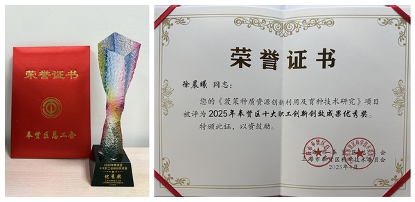 会后,徐晨曦表示:“这项荣誉的获得,离不开团队成员十余年来在菠菜育种科研道路上的默默耕耘与协同攻关,更离不开学校、学院对基础研究与应用探索的长期支持与悉心指导。能够将实验室的科研成果真正应用到田间地头,服务于农业增效、农民增收,并为奉贤区现代农业发展贡献绵薄之力,我深感荣幸与自豪。我们将继续聚焦农业科技前沿,力争培育出更多优质、高效的作物品种,不辜负这份肯定与期待,以实际行动为学校的发展和乡村振兴事业再添新绩。”