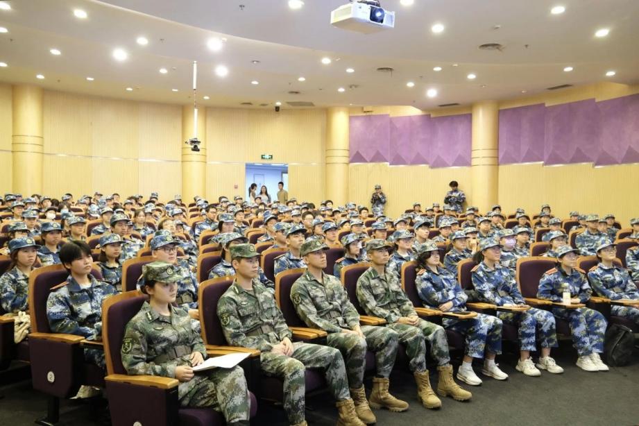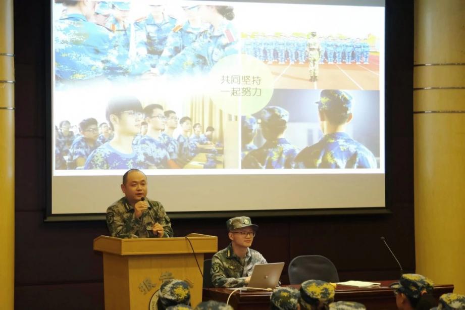 王丽云连长分享了她的入伍动机以及服役期间的经历并代表连排长们激励大家以军人的标准严格要求自己,以饱满的热情和顽强的毅力迎接每一次挑战。她的亲身经历和真诚话语让同学们深受鼓舞,也为即将拉开帷幕的军训生活注入了满腔热忱与十足底气。