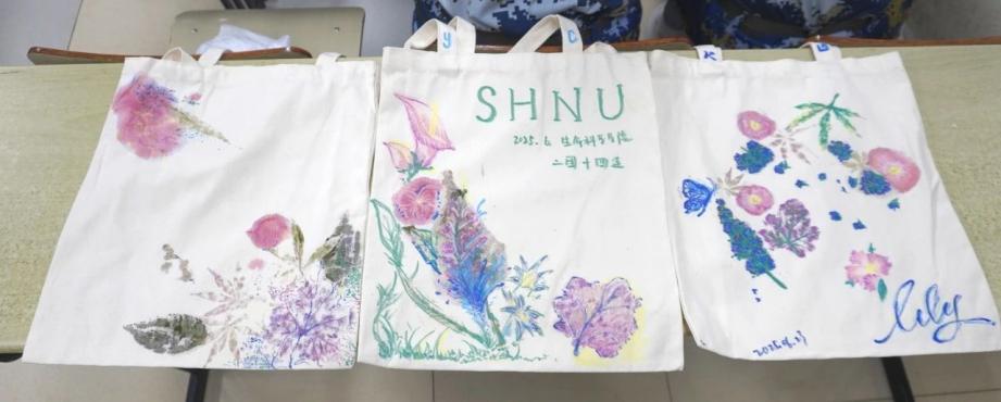 从校园内采集酢浆草、金光菊等特色植物,到构图设计、锤压拓印,同学们以小组协作模式完成创作。当拓染开始,教室里响起此起彼伏的“咚咚”敲击声,这声音仿佛是同学们与自然的对话。随着一次次的敲击,植物的自然纹理与色彩神奇地转印到帆布上,原本朴素的帆布袋在同学们手中渐渐变成了独具创意的艺术品。在这个过程中,同学们不仅释放了军训的疲惫,更体会到了亲手创造美的快乐,也深刻感受到团队协作的力量——正是大家各司其职、相互配合,才让每一个作品都如此精彩。