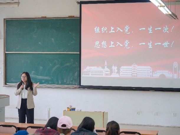 2009级生物学硕士校友、上海天能科技有限公司销售总监孙铭希,以“从实验室到职场:一名党员的青春选择与坚守”为题,与入党积极分子分享了其在学习、工作中,如何筑牢理想信念根基,不断突破舒适圈,立足岗位干事创业。