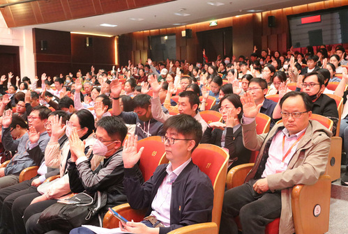 4月19日下午,中共151amjs澳金沙门委员会换届选举党员大会在霞棐剧院举行。校党委组织部胡斌列席会议。学院240名师生党员参加大会。大会由学院党委副书记谢月恒主持。