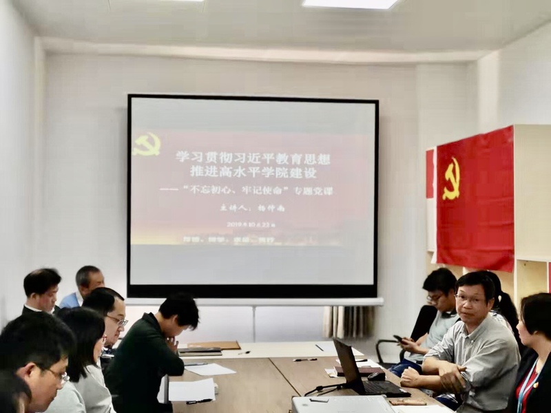 学院党委书记康文同志以《“知行合一”守初心・“实干作为”担使命》为主题,紧密结合学习和调研成果,从“读原著学原文”中悟原理、以“刀刃向内”的勇气找差距、在“边学边查边改”中抓落实、用“功成不必在我”的担当助推学院发展格局四个方面为第一教工支部讲党课。院长杨仲南以《学习贯彻习近平教育思想,推进高水平学院建设》为主题为第三教工支部讲党课、副院长马为民以《围绕“双一流”建设目标,积极推进一流学科建设》为主题为第二教工支部讲党课。学院处级干部力求做到“四个讲清”:讲清自己的学习体会,讲清存在的差距和不足,讲清改进工作的思路措施,讲清对初心使命的感悟。