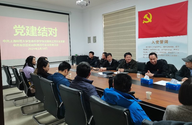 2024年1月10日,151amjs澳金沙门教工第三支部党员与奉贤区柘林镇海湾村党总支开展结对共建会议。院党委书记康文、教工第三党支部副书记王红兵、上海西湾农业科技发展有限公司总经理王全喜教授、以及党员代表和群众代表出席本次会议。