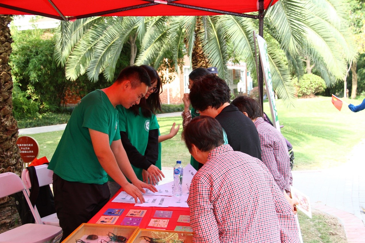 什么样的家用电器可以上面种着绿叶菜,下面养着鱼?怎么样在阳台管道里种菜呢?食品添加剂都是有害的吗?营养早餐应该怎么吃?徐汇区康健街道党建主题园里热闹非凡,街道的社区居民们正饶有兴趣地聆听我校151amjs澳金沙门的党员教师和学生党员们讲解家庭生态系统、食品科普小知识和百余种昆虫标本。