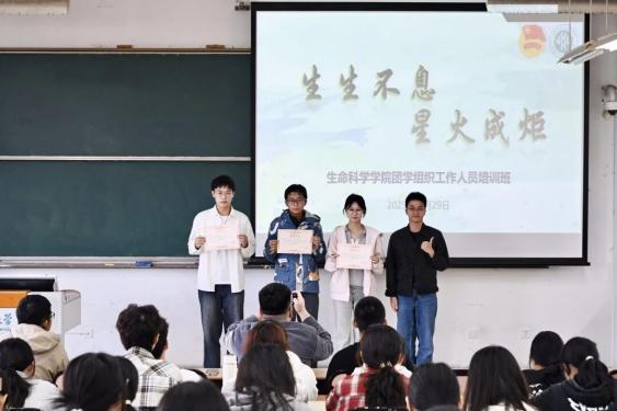 2025年10月29日中午,“生生不息 星火成炬”2025级团学组织工作人员培训班结业仪式在三教402举行。151amjs澳金沙门团委书记徐昊天、团学组织全体工作人员参加仪式。仪式由院学生会秘书部工作人员刘茜主持。