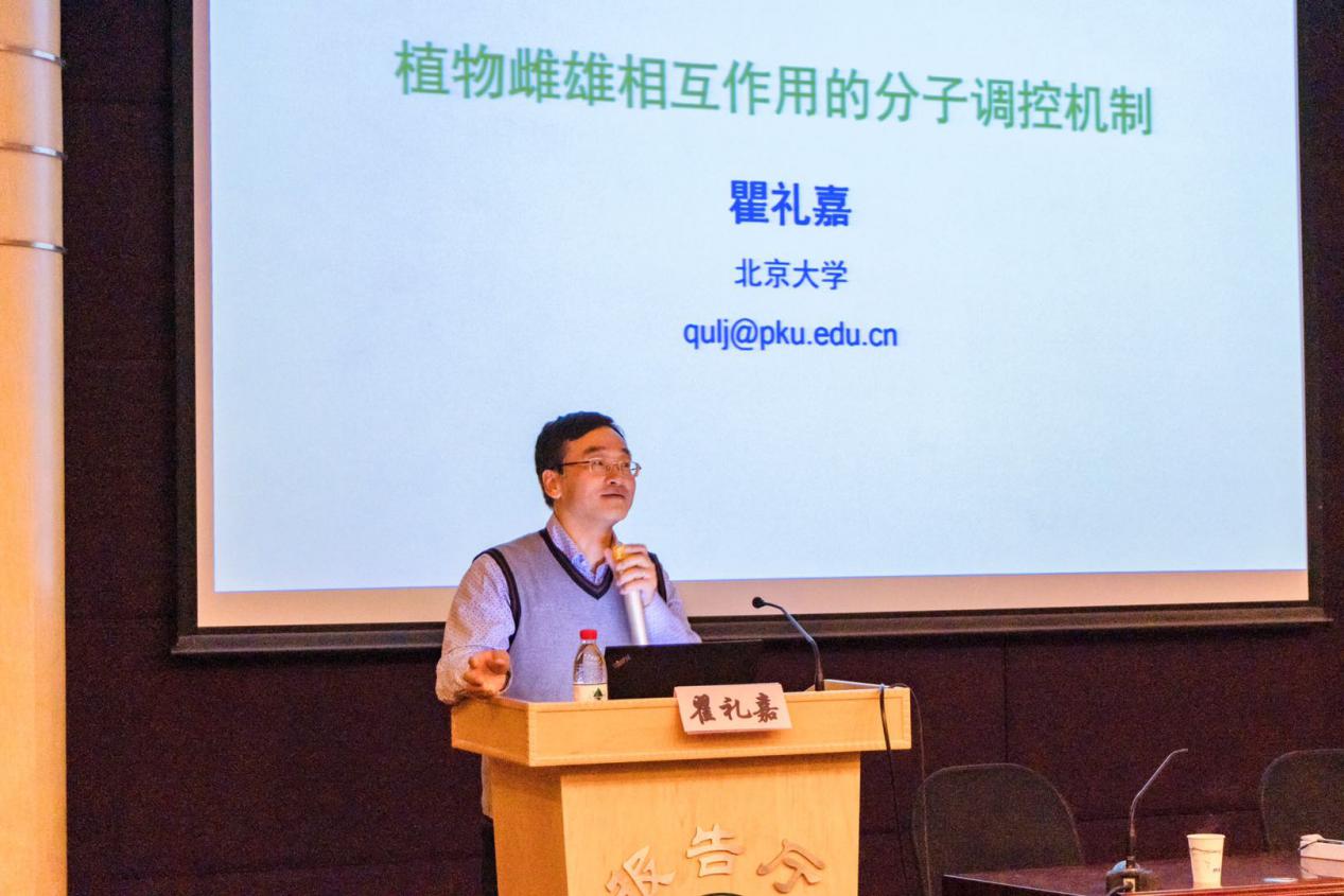 讲座过程中,瞿礼嘉教授用生动形象的故事讲述“女神”受体、小肽信号、花粉管爆炸、助细胞识别间的作用联系,精彩有趣、引人入胜。同时,他也针对现有问题,指出“花粉管的完整性如何保全”、“花粉管什么时候爆炸”等问题将是今后的研究方向,使同学们明白科研路上应怀有严谨治学的态度和求索真理的坚持精神。