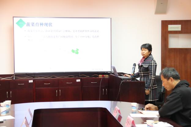 考察结束后,宋学梅一行与中心相关负责人进行座谈。会上,杨仲南院长对宋主任一行的来访表示热烈欢迎,简要介绍了中心在基地建设、人才队伍建设、科研与社会服务等取得的成效。随后,王全华教授和明凤教授汇报了中心在绿叶菜、花卉等领域的研究进展及最新研究成果。