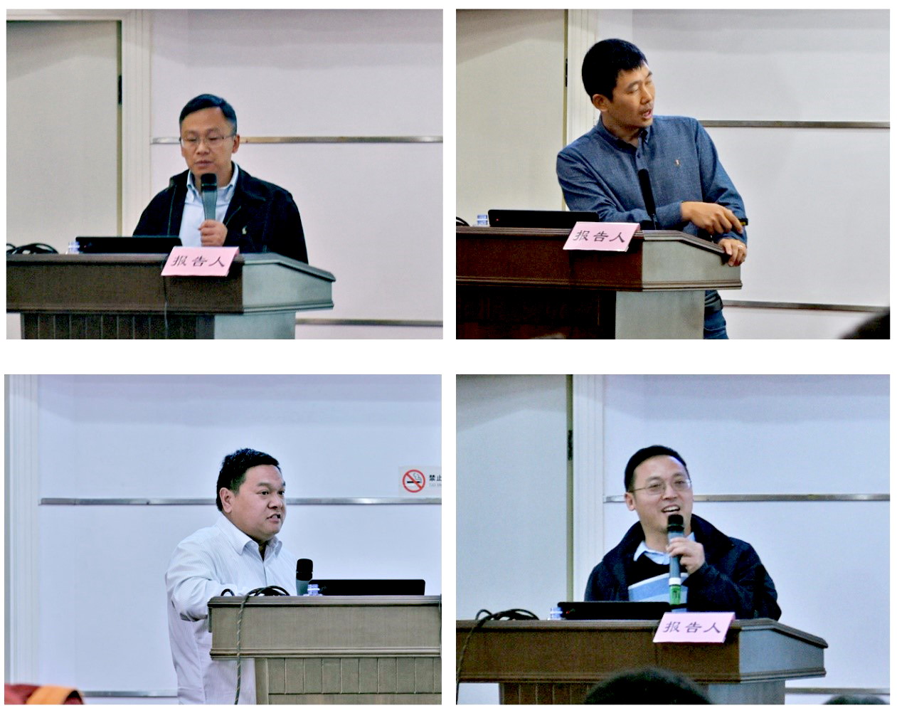 张晓明研究员、王二涛研究员、张杰研究员与王献兵教授做报告(从左至右)