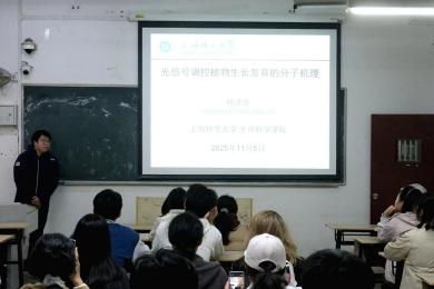 第二会场,杨洪全教授课题组从光信号调控植物发育的分子机制方向,乔永利教授课题组从植物微生物分子互作方向,马为民教授课题组从藻类光合作用与微藻放氢方向与新生进行深入沟通。