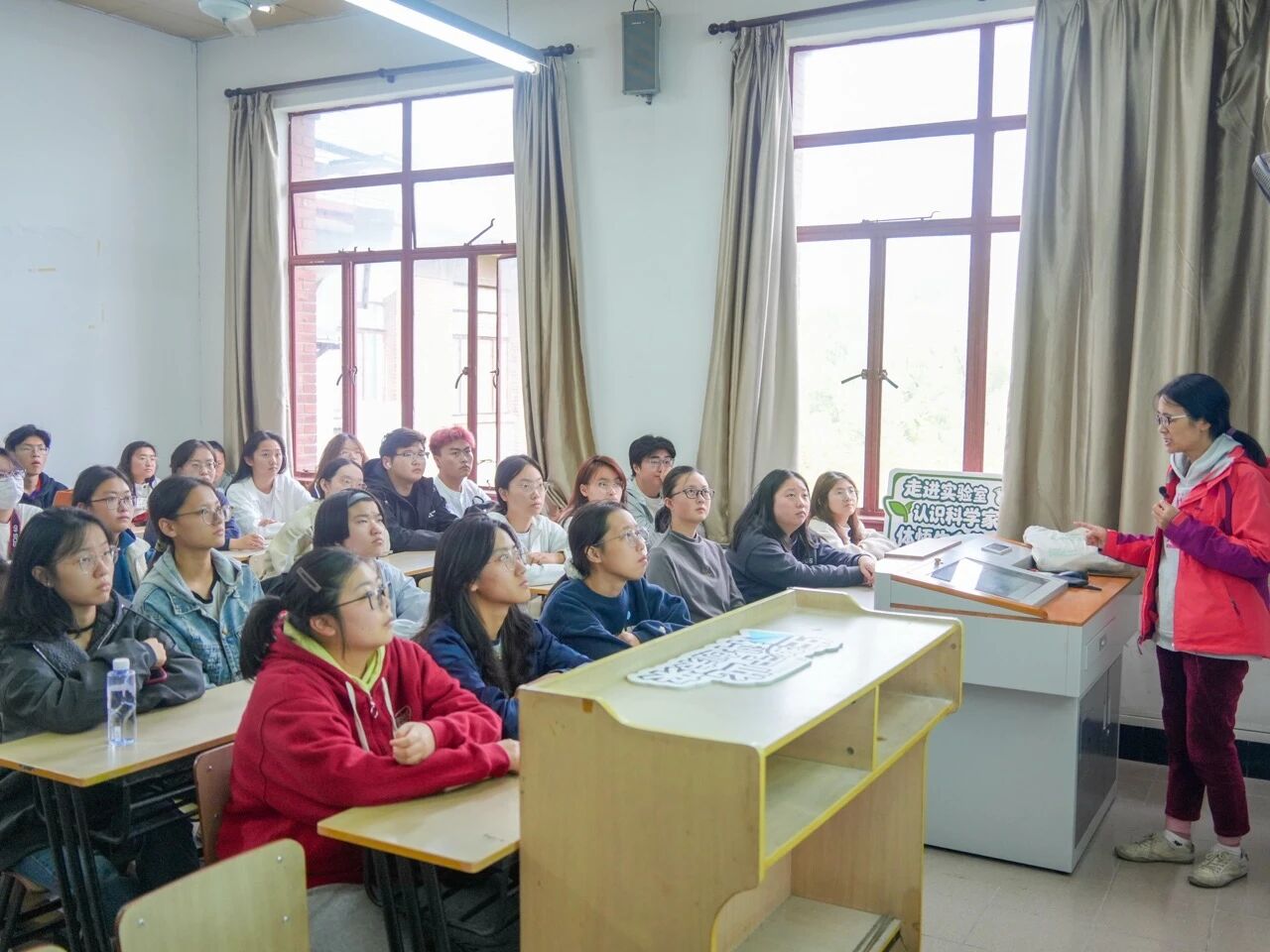 科学家们将专业术语融于生活实际,不仅介绍了当代科研研究历史与涉及领域,还从团队研究方向,研究内容与当下实验研究成果方面进行深入浅出地讲解,使同学们了解了实验背后的基本原理与发展前景,产生了浓厚科学学习兴趣。在与老师们的交流中,同学们直观感受到老师们严谨治学、潜心研究的科学家精神,也深刻体会到“溯生命本源 求科学真知”的院训精神。