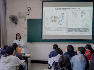 在第一会场,朱骏教授课题组从植物雄性不育与育性恢复方向,孟祥宗教授课题组从植物免疫信号传导与抗病分子机制方向,芦银华教授课题组从微生物药物细胞工厂与合成生物学方向为新生做了详细的介绍。