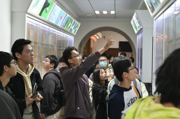 随后,同学们在2024级生物科学(卓越创新班)学生志愿者的带领下,前往上海市科普教育基地——我院生物标本馆,进行参观学习。志愿者们细致而幽默的介绍拓宽了学生对生物多样性的了解,使同学们认识到自然选择下不同生物形态结构差异与其发展常识。