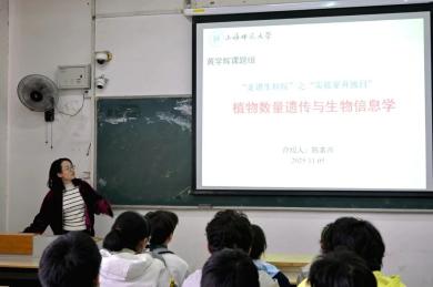 在第四会场,黄学辉教授课题组从植物数量遗传与生物信息学方向,彭连伟教授课题组从光合作用调控机理方向,殷子为教授课题组从动物多样性和保护方向做了通俗易懂的讲解。