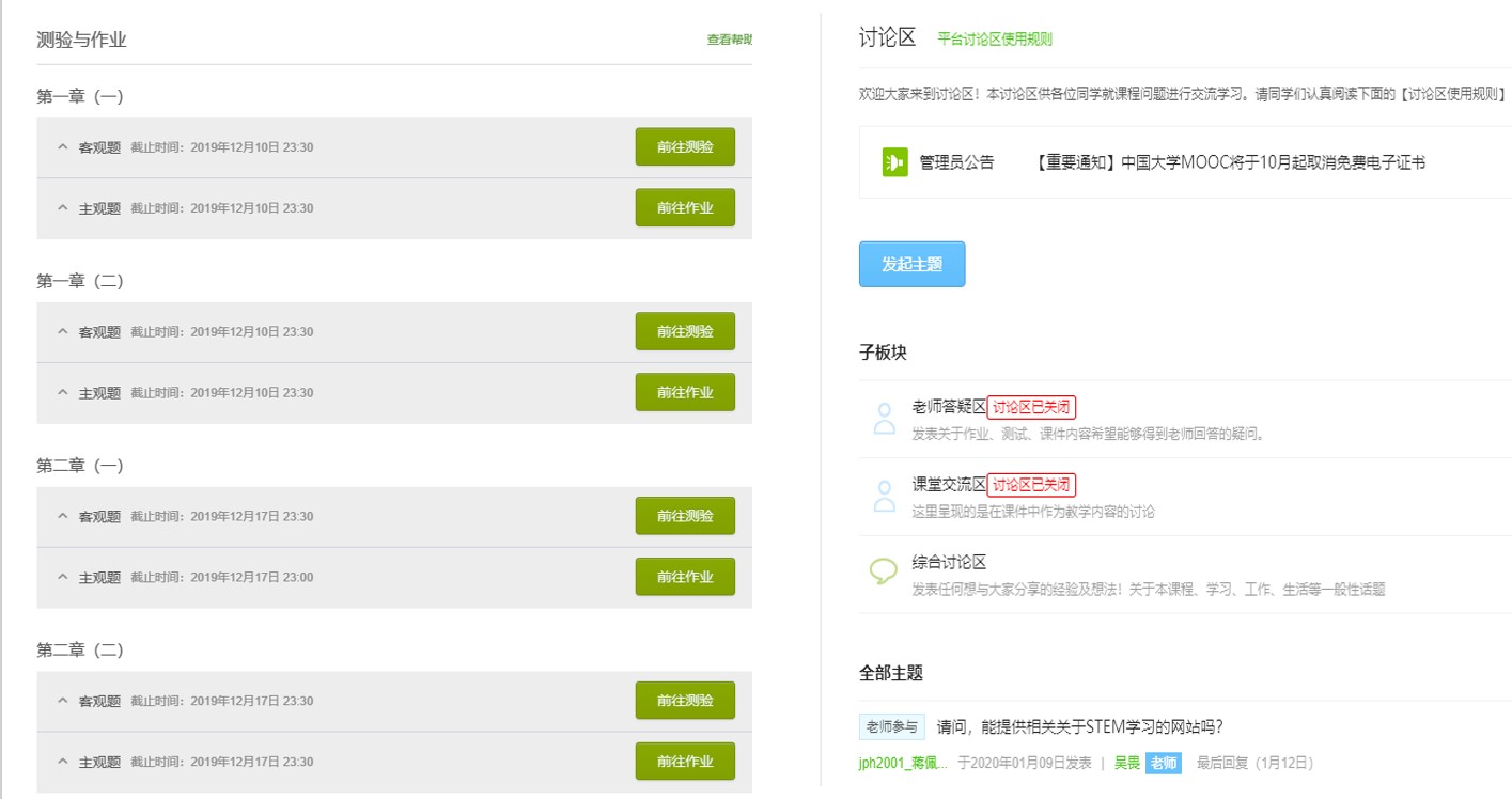植物学教研室的青年教师许丽丽和团队老师们合作制作了《STEM理论与实践》的MOOC,已经开始在线教学,为了更好的服务学生,达到线上授课的最好效果,许丽丽老师以慕课内容为主体,结合超星平台设立了授课计划。教学内容分为课件、测试与作业、考试、讨论区几个版块。